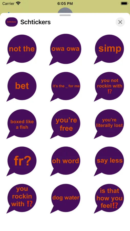 Express how you really feel in your iMessages with various snarky sayings. All sayings are contained within speech bubbles for a consistent, clean and crisp look.