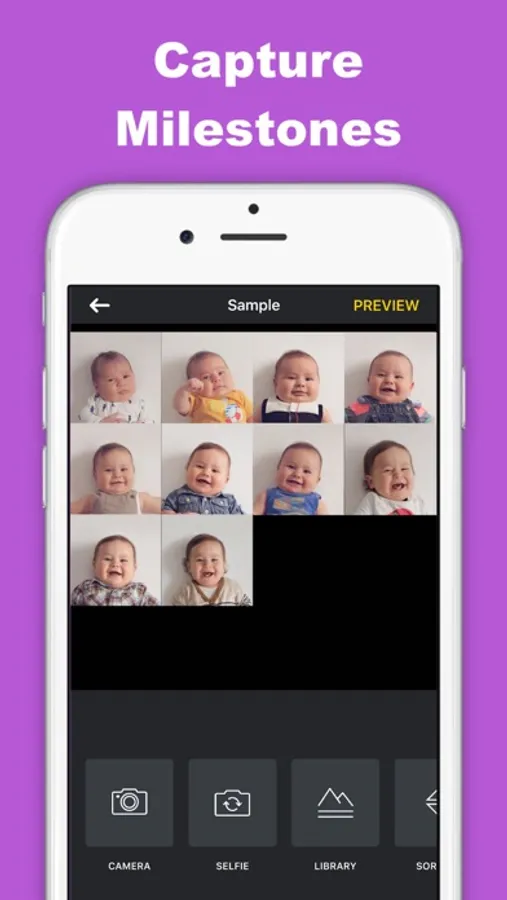 The app uses Artificial Intelligence to turn your baby photos into adorable baby monthly pictures, a time lapse video, and MUCH more.