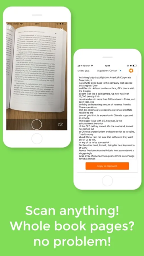 This scanner has totally unique algorithm. While other OCR apps may require perfect lighting and snowwhite background, this app detects everything even in dark and noisy pictures.