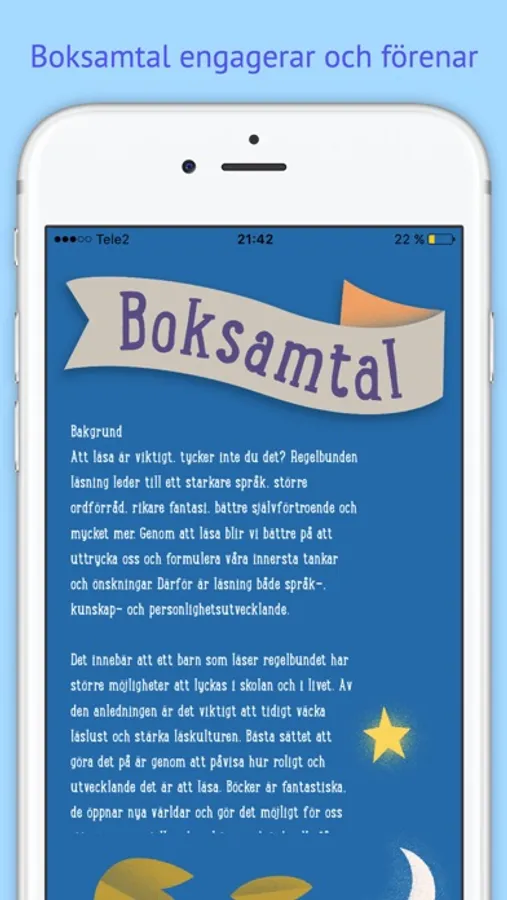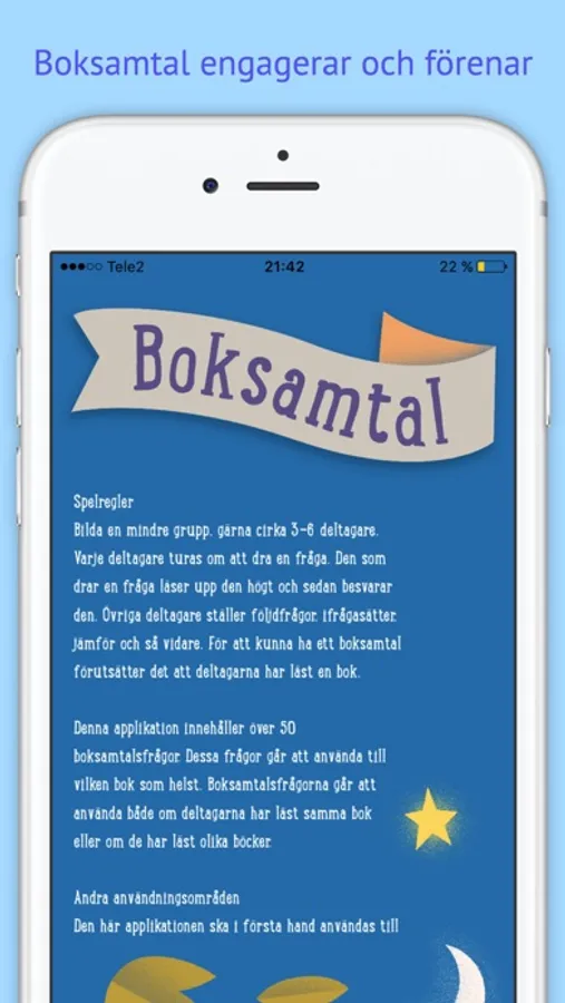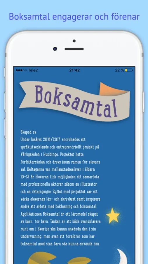 Boksamtal är en pedagogisk och lärorik applikation. Det är ett läromedel som ska användas i samband med bokläsning och när man ska samtala om böcker. Det är ett suveränt verktyg som både kan användas av lärare och privatpersoner.