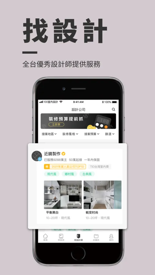 覆蓋全台灣的優質設計師、設計公司,讓你通過設計案例瞭解設計師的實力、風格是否符合你的要求