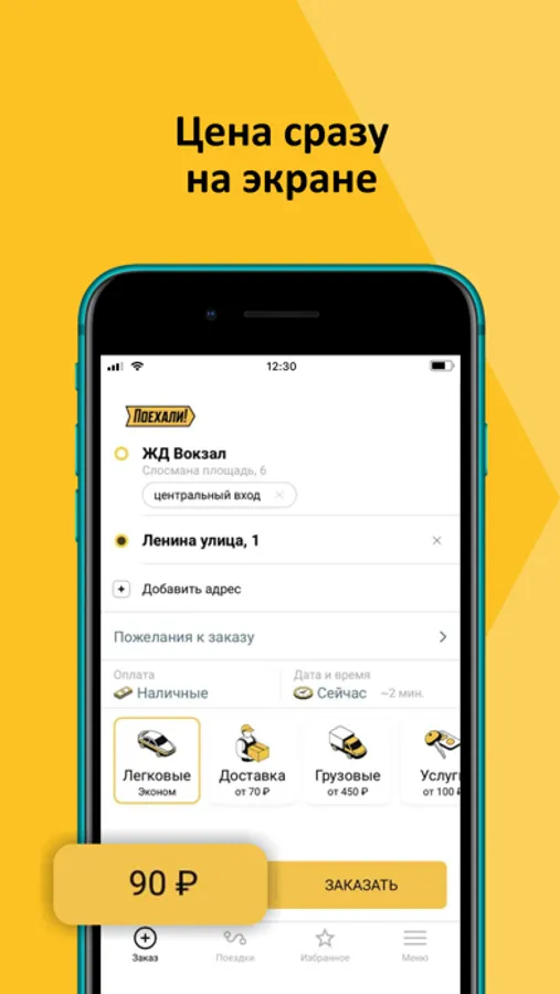 Стараемся держать цены низкими, чтобы поездки на такси были доступны каждый день. Запускай приложение, когда нужно уехать недорого. На вокзал, в аэропорт и просто по городу. Стоимость видна сразу после указания адресов, еще до нажатия кнопки «Заказать».