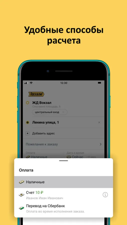 Добавь любимые адреса и маршруты в «Избранное» и заказывай такси в два нажатия. Отправляй ссылку с маршрутом поездки близким, заказывай такси со своего смартфона другим людям, оплачивай поездки наличными, переводом или с карты.