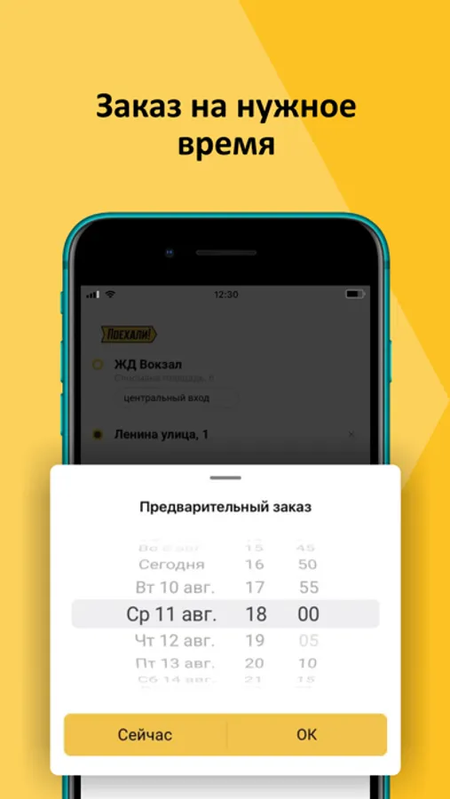 Закажи сейчас, и минуты до приезда автомобиля отобразится на экране. Создай заказ заранее за несколько часов, и в нужное время водитель будет на месте.