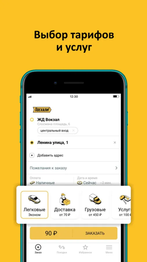 Современное приложение для заказа такси и других услуг в твоем городе. Укажи адреса, нажми «Заказать» — и поехали!