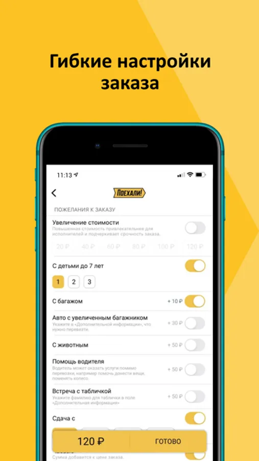 Отмечай в пожеланиях, если поездка с ребенком, чтобы приехала машина с детским креслом. Укажи «Помощь водителя», когда нужно погрузить коляску или покупки в багажник. Открой приложение и посмотри все возможности кастомизации заказа.