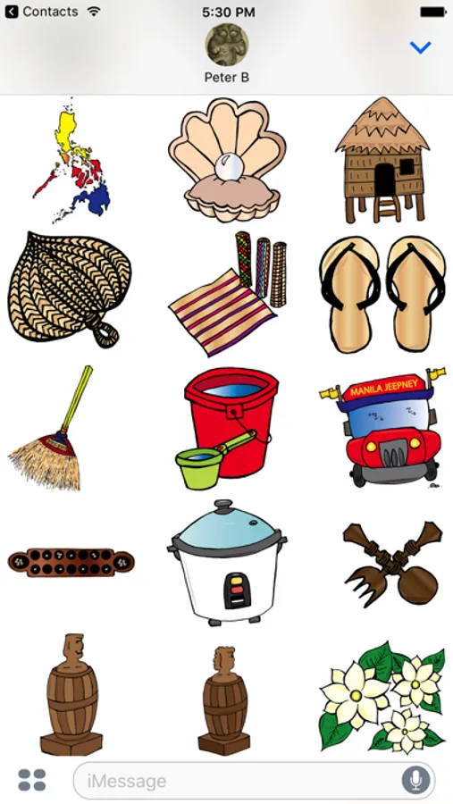 Brighten up your messages with Pilipino/Philippine themed stickers: Pilipino Sticker collection. Stickers are divided into 3 categories; food, culture, and expressions (in tagalog, english, and taglish).