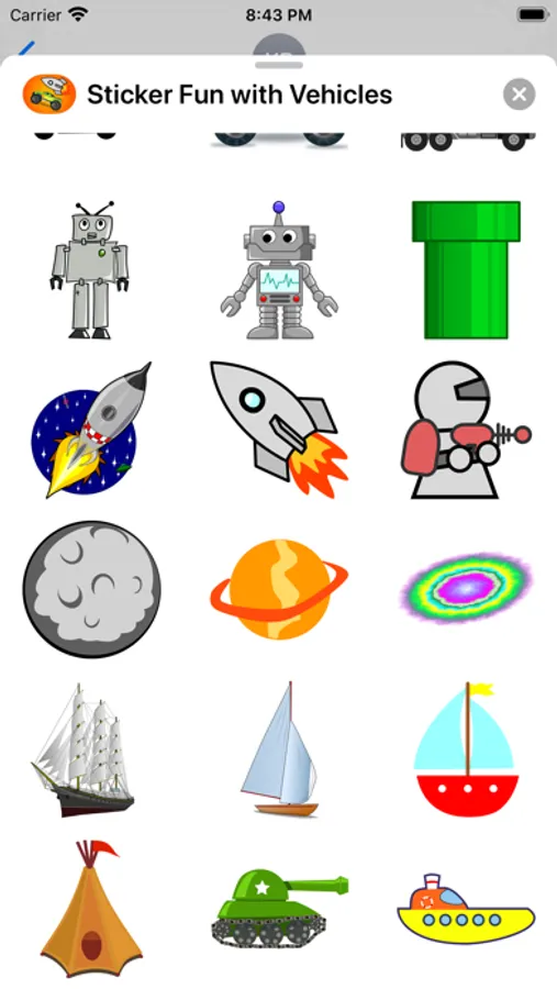 Vehicles of all shapes and sizes come to life in this adventurous sticker pack!! From a yellow submarine, to sailboats, cars, trucks, space ships...and everything between and beyond!! 21 amazing stickers in all!