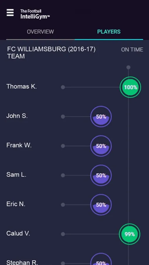 The Football IntelliGym Monitor allows coaches, trainers and managers to track the IntelliGym training activity of their players.