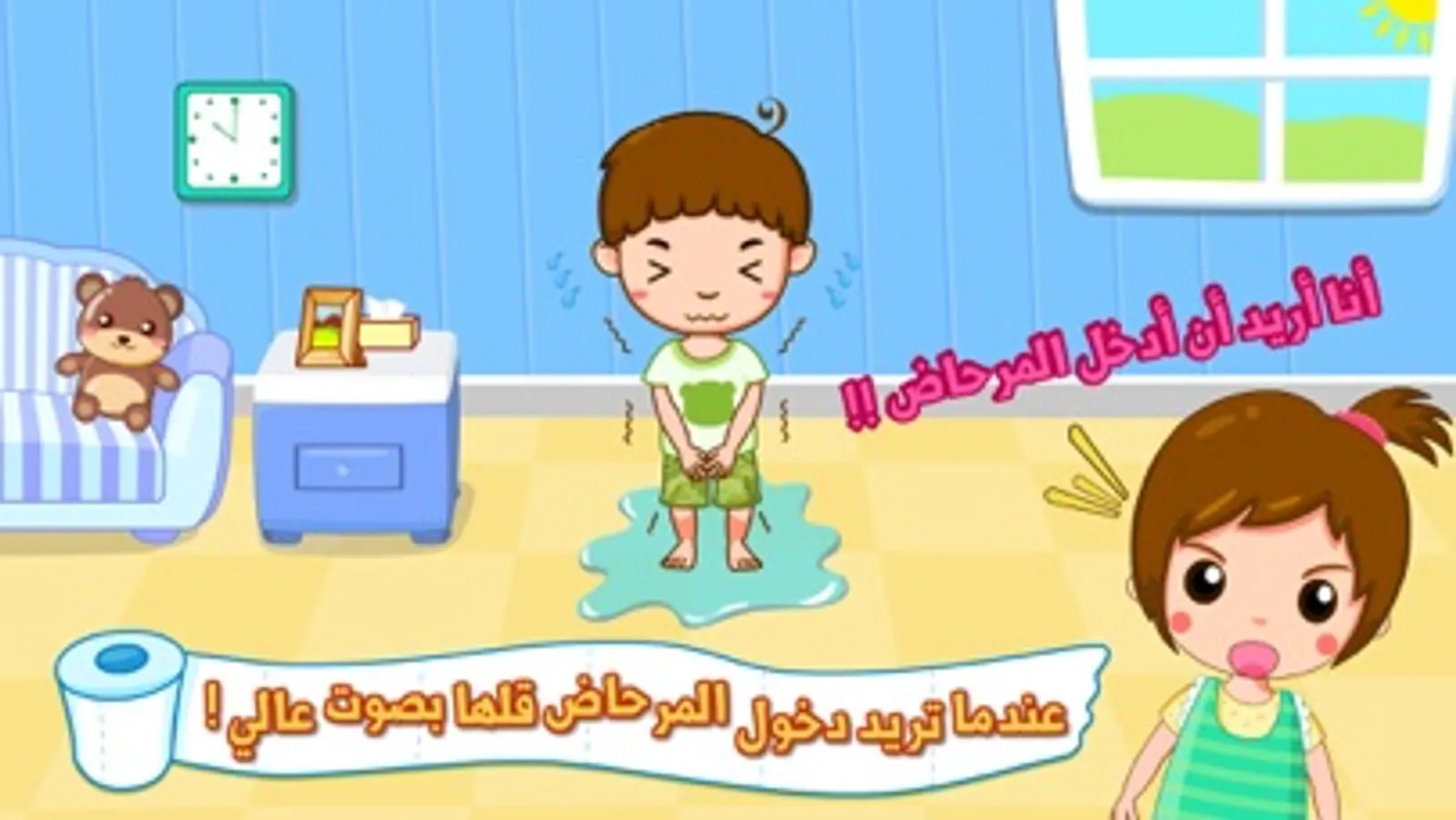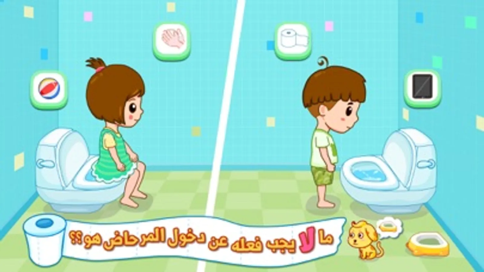 الأطفال الصغار لا يستطيعوا دخول المرحاض بمفردهم , أو لا يعرفون كيفيه التعامل مع المرحاض , وتلك المشكلة ترهق الأباء بشكل يومي !!دائماً ما يحرص الأهل على تربيه الطفل على العادات الصحية منذ الصغر , ومن أهم تلك العادات هي الاستخدام الصحي للمرحاض وآداب دخول الحمام . تطبيق “ تدريب استخدام المرحاض “ هو تطبيق شيق منبيبي باص للأطفال من سن 3 سنوات , يقدم تجربه جديده في تدريب الطفل على استخدام المرحاض عن طريق لعبة ممتعه تحاكي واقع استخدام المرحاض وما ينبغي تعلمه من آداب استخدام المرحاض , وهو يوفر الكثير من العناء لأولياء الأمور في شرح ما يجب على الطفل فعله أثناء استخدام المرحاض .
