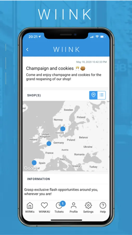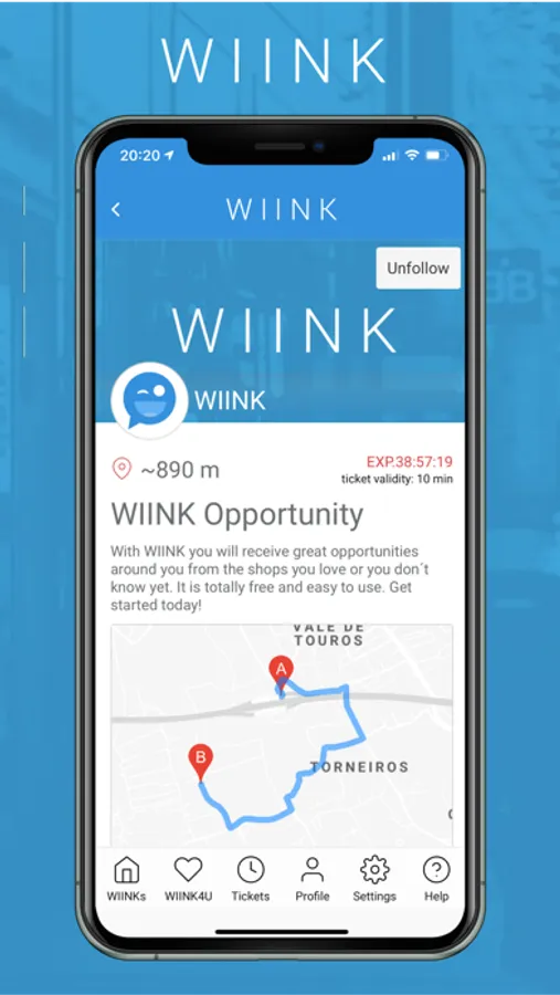 Check the WIINKs available around you, enter them in time and go directly to the store using the app to take advantage of them.