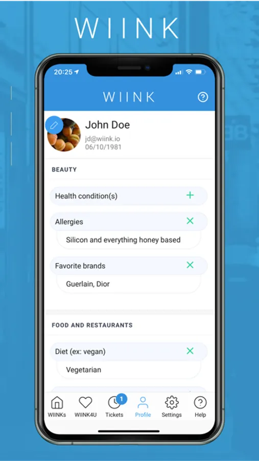 - Loyalty: become a follower of your favorite stores and do not miss any of their opportunities: receive their VIP WIINKs even if you are outside the selected geographic area.