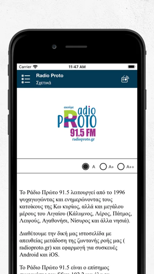 Απολαύστε το μοναδικό, ραδιοφωνικό διαδικτυακό ταξίδι όπου και αν είστε. Ράδιο Πρώτο 91.5, ο τοπικός σταθμός που αγαπάς.