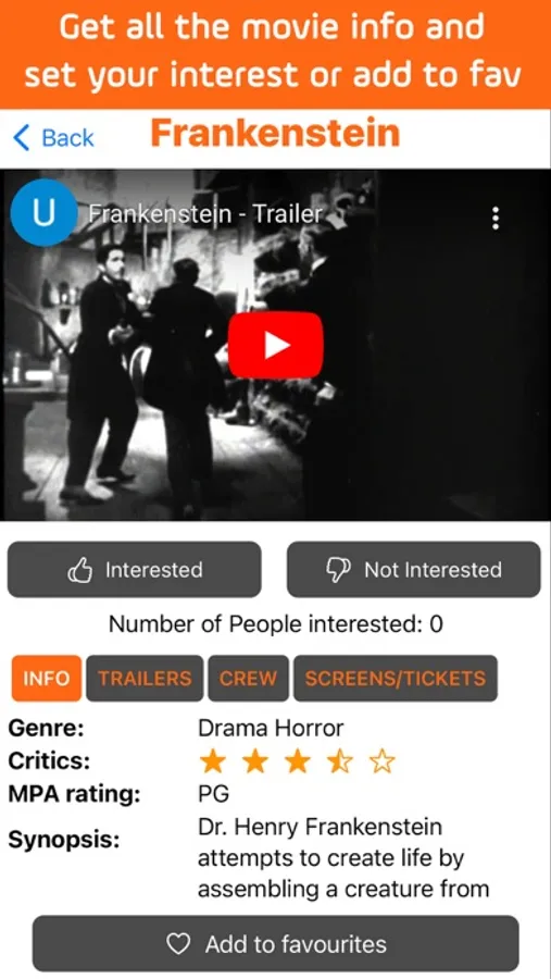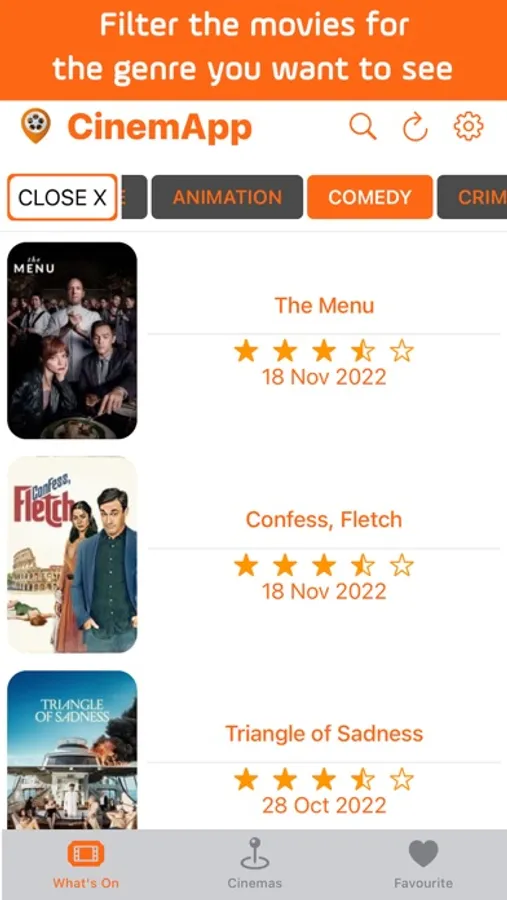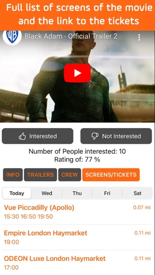 The app contains ads and limitations on the number of cinemas and movies you can save on your favourites.
