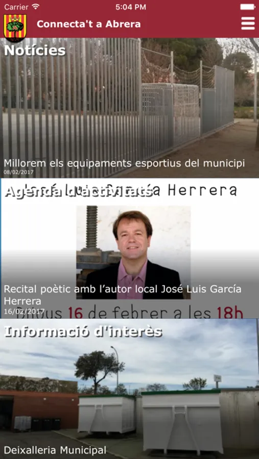 Aplicació de l'Ajuntament d'Abrera per estar al dia de la informació i serveis municipals. Consulta des del teu mòbil les últimes notícies, l'agenda d'activitats o el directori d'adreces i telèfons d'equipaments, comerços i entitats. Abrera a la butxaca. Quan vulguis i siguis on siguis.