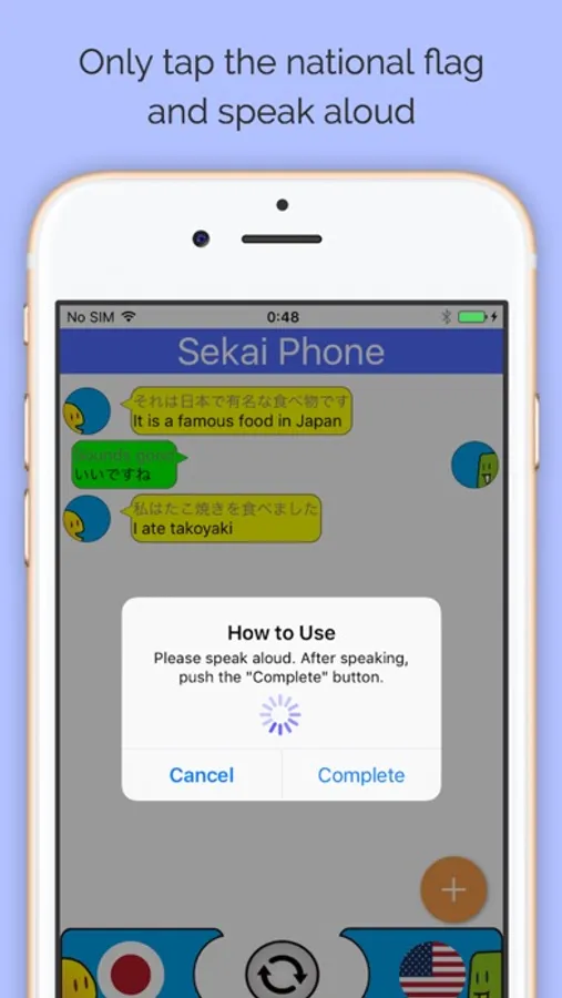 * If you call phone to another with this app, you speak your own lang (e.g.Japanese), your voice changing to receiver's own lang (e.g.English).