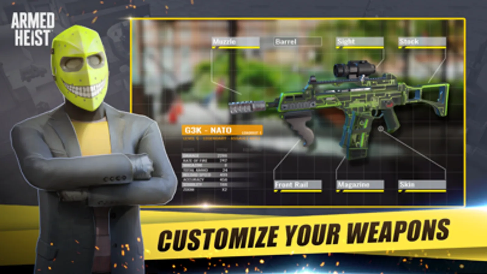 • Customizable Weapon System – build the wildest, modified guns you could ever imagine! Pistols, shotguns, snipers & assault rifles! Get your arsenal as deadly as possible for the next bank robbery!