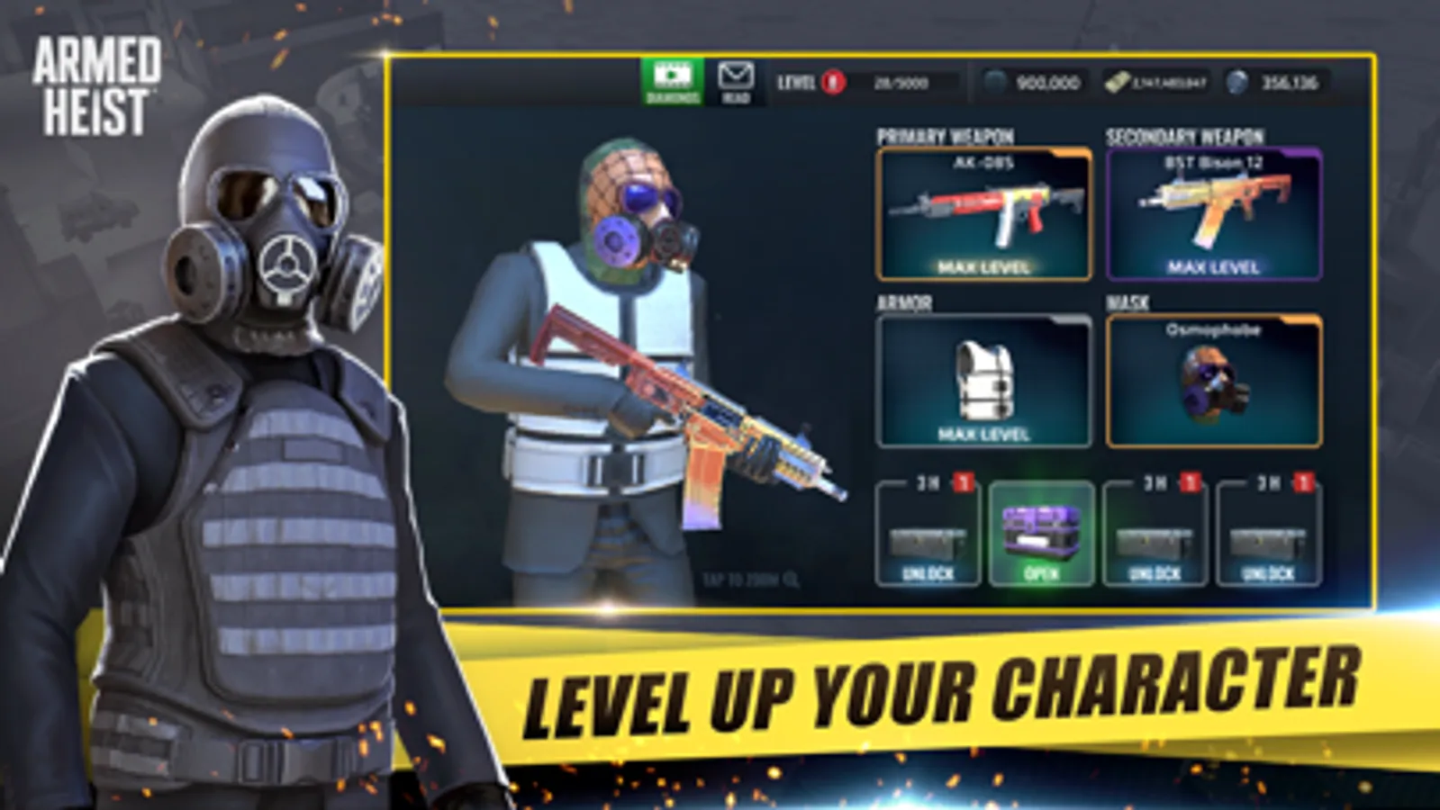 • Pimp Your Character – Create your own ruthless bank robber! Want to be a killer clown? X special forces? Maybe a badass gangster? Earn skins, masks, bulletproof vests & awesome outfits. High-quality 3D graphics and immersive gameplay make this third person shooter into an action-packed shootout!