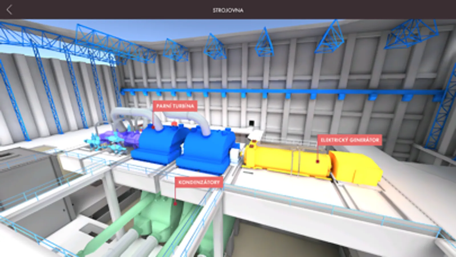 Aplikace „Svět energie - 3D elektrárny“ umožňuje ve 3D realitě nahlédnout do různých typů elektráren a prostřednictvím názorných 3D modelů prozkoumat jejich nejvýznamnější technologická zařízení, včetně jejich konstrukce, základních principů, parametrů a multimediálních doplňků. Aplikace je především určena pro středoškoláky, ale zajímavé informace si zde najdou i zvídaví žáci druhého stupně ZŠ a obsah je atraktivní i pro širokou veřejnost.