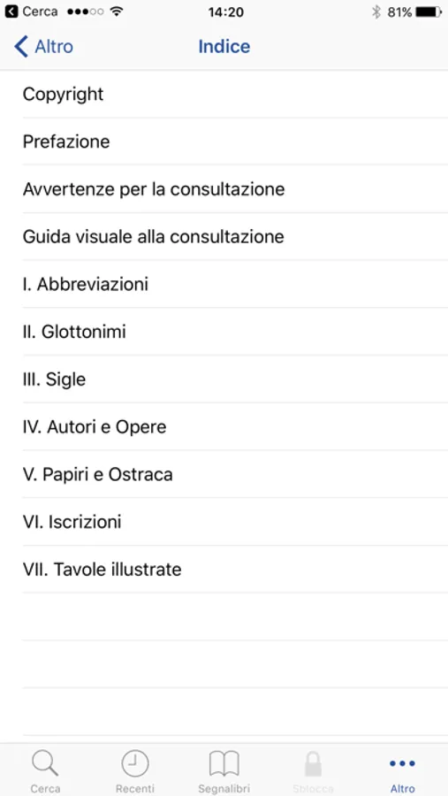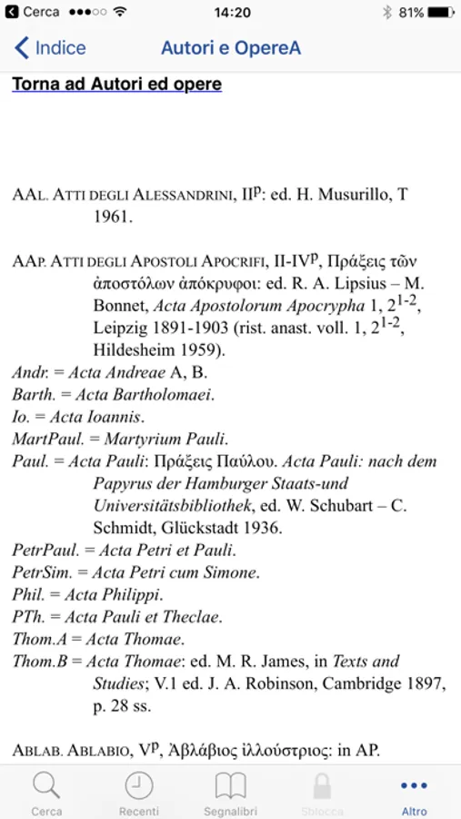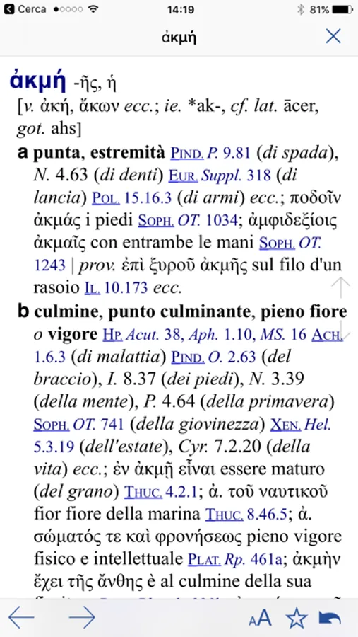 • circa 15.000 verbi con indicazione delle voci paradigmatiche effettivamente attestate negli autori antichi