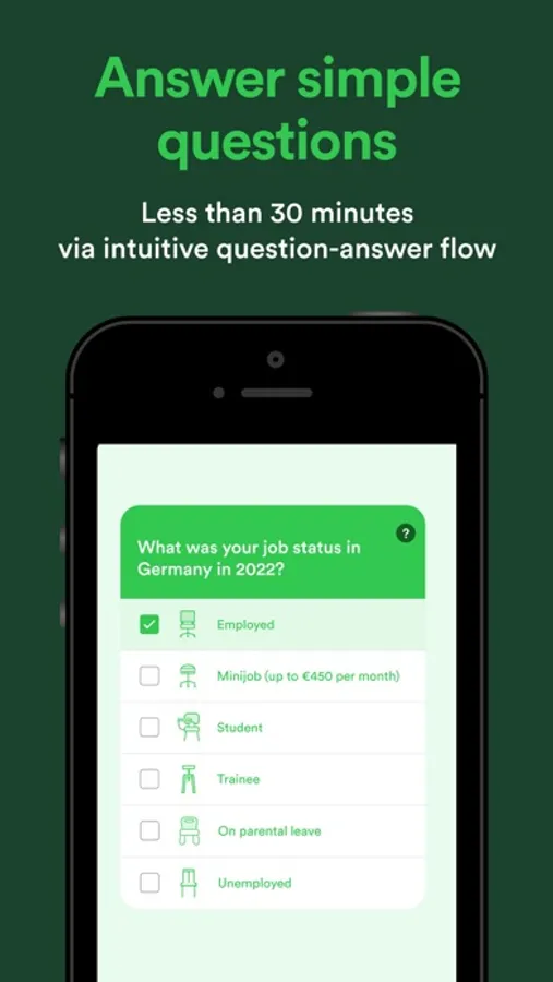 You don't need tax knowledge to answer our questions. If you are unsure about something, the info boxes within the app offer assistance at any point.