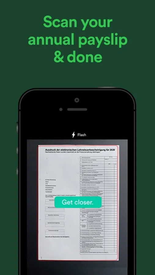 Upload or photograph your annual payslip (Lohnsteuerbescheinigung) and a document to confirm your identity. To save you effort, we automatically transfer all relevant data from your annual payslip to the corresponding fields of your tax return.