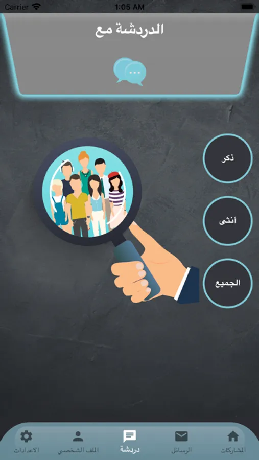 يمكنك التطبيق من التعرف على اشخاص جدد والتراسل معهم بشكل سري