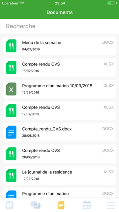 - Télécharger les documents partagés par l’équipe de la résidence: Newsletter, menu, compte rendu de CSV, etc...