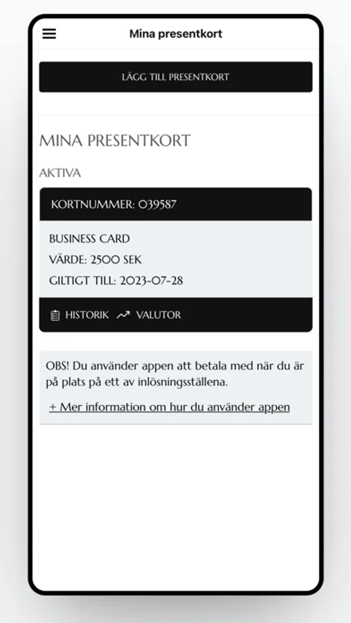 RestaurangGuiden's gift card app is a sophisticated gift card and at the same time a guide to hundreds of restaurants, hotels and spas in both Sweden and Denmark where the gift card is valid. Many of these are among the best in the countries and are mentioned in guides such as White Guide and the Michelin Guide. The gift card is also loaded with lots of offers that makes the money last a little longer. A business version is available with 10% extra value at many places.