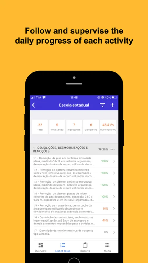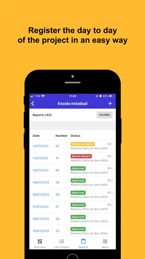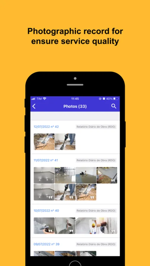 Allows you to document, control, inspect and monitor the progress of the work on a daily basis. Agility to find information in any Daily Report easily.