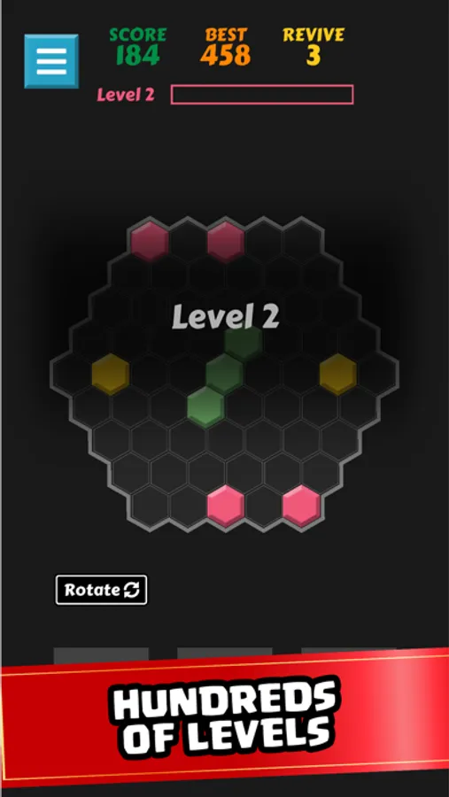 - Choose to play in a Block or Hexagon mode
