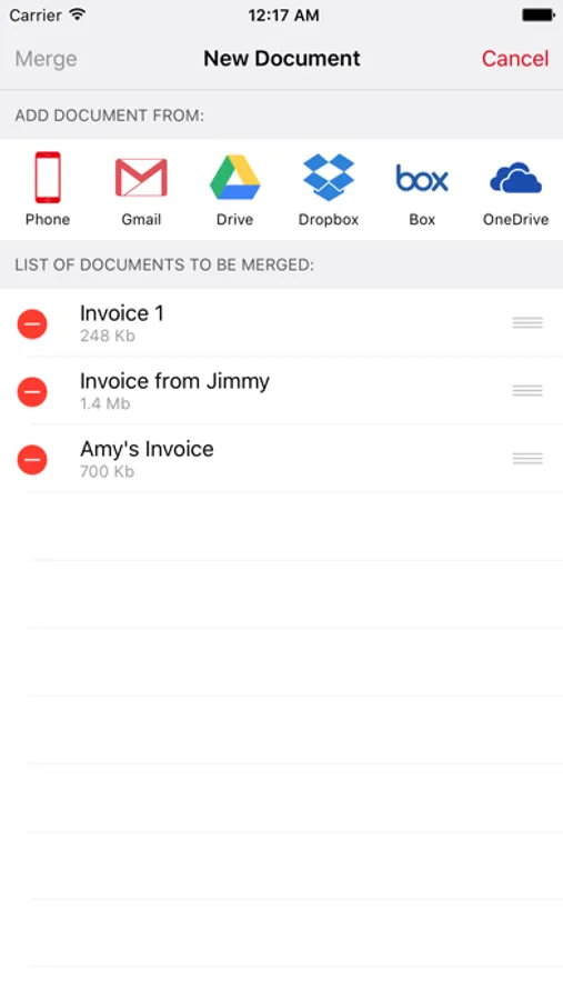 Combine two or more PDF documents into one, right on your iPhone or iPad! PDF Merge is fast and easy-to-use app that will allow you to create new PDF documents by combining existing ones from anywhere on your phone. You can also merge files from Gmail, Google Drive, Dropbox, Box and OneDrive directly within our app without even leaving it.