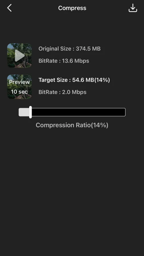 Video Compress can help you compress your videos easily.Just add your video to the app, specify the target size, and save the product.