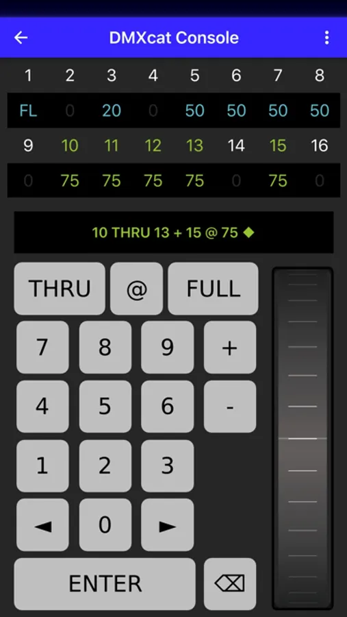 •DMX Controller: A single universe (512) DMX channel controller with two user interfaces (sliders or keypad).