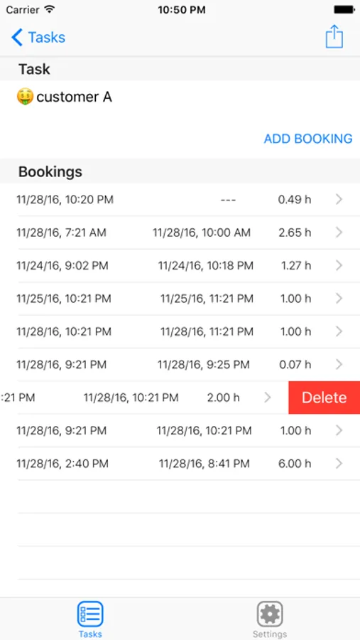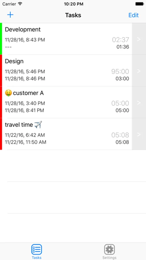 With TimeRecorder it is easy to track the times you spend in one or more projects. Create tasks as many as you want. You will find them, clearly represented, on the start screen. Starting and ending of one booking could be made with just one click on the task. This will minimize the operation time and gives you more time for the essential - your work. Do you want to record your travel times, do you have to distinguish between active and passive travel activity? No problem: Create so many tasks as you want. There are no restrictions to the number of tasks.