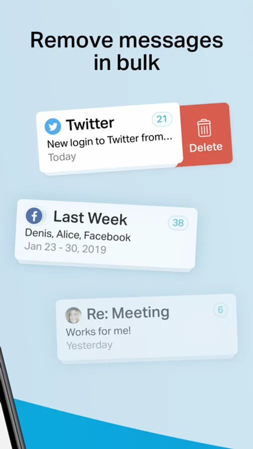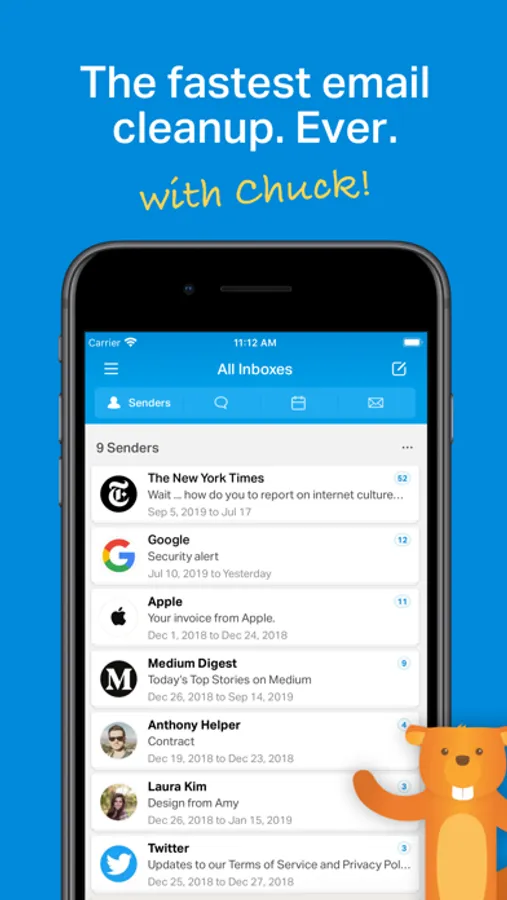 Chuck is the fastest way to quickly clean up your inbox. Delete, archive and sort batches of emails in just one tap. Plus, unsubscribe from unwanted email.
