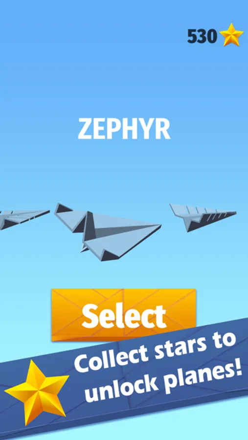 Your plane goes faster the longer you stay in flight. Be careful of the clouds as you pick up speed! Collect rings to increase your score. Collect stars to buy new planes!
