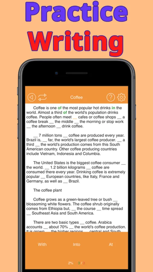 In our application, you can learn prepositions based on passages from real articles and passages from books. You choose from the option that you like and proceed to the assignments.