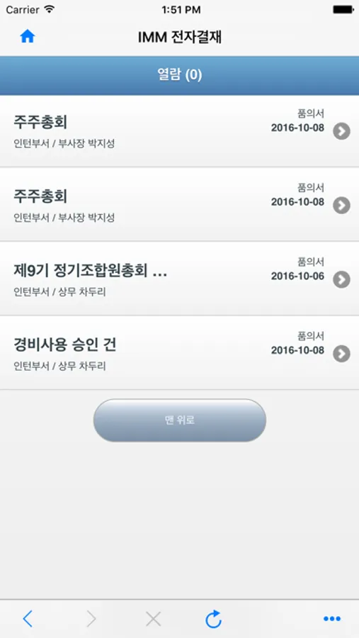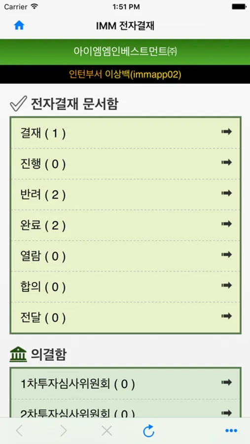 아이엠엠인베스트먼트(주) 투자심사 전자결재 모바일 서비스입니다.