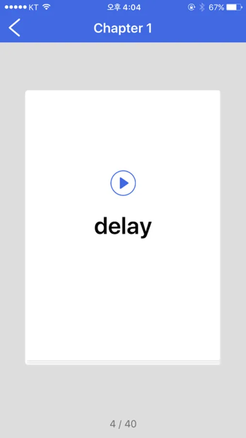 각 단어장의 모든 단어를 학습합니다. 암기한 단어는 왼쪽, 암기하지 못한 단어는 오른쪽으로 밀어두어 재학습이 가능합니다.