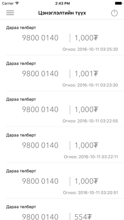 Мөн цэнэглэлт хийсэн сүүлийн гүйлгээ болон сүүлийн татан авалтын түүхүүдийг харах давуу талтай.
