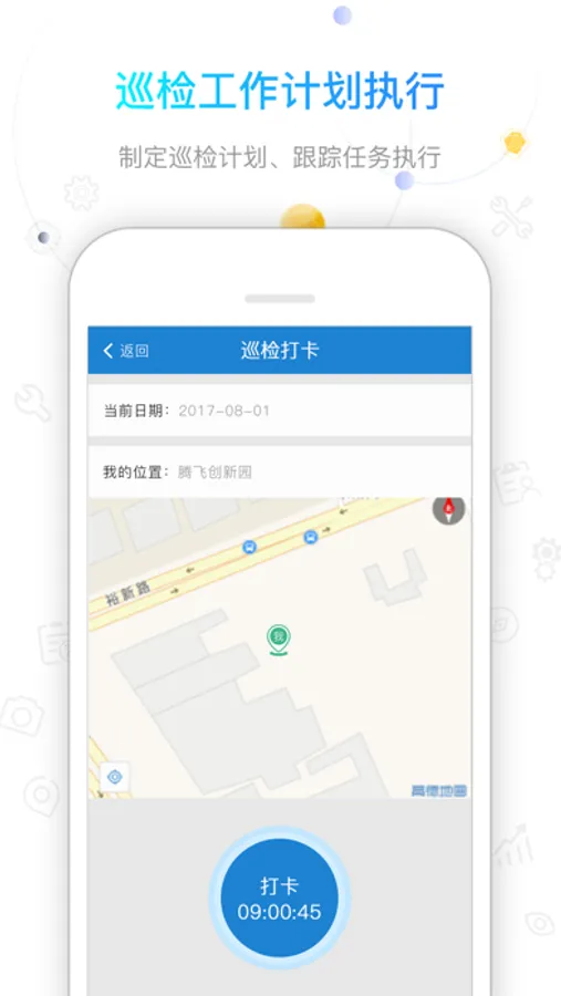 【巡检打卡】:GPS定位、时间自动采集,打卡真实可靠,照片上传明确可追溯。