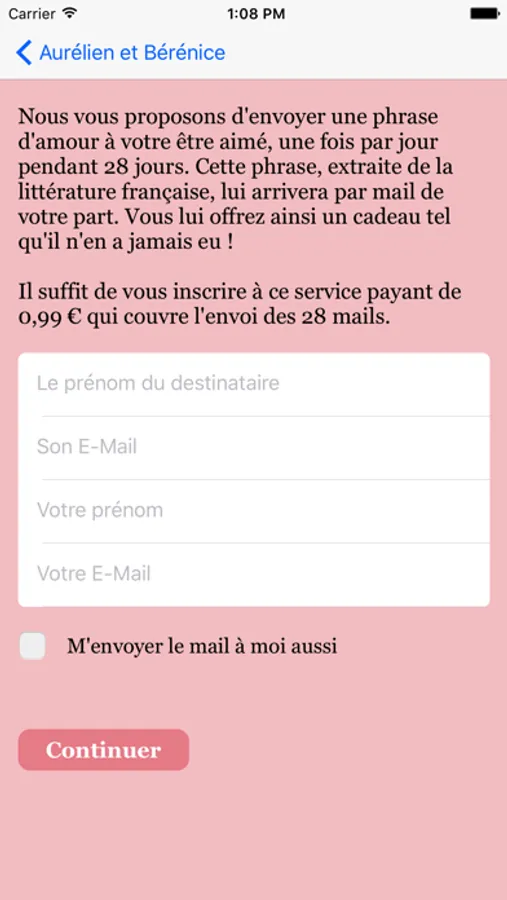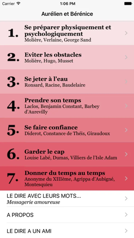 Archivez, partagez vos textes préférés et faites de l'application "Aurélien et Bérénice" un outil indispensable à l'art d'aimer à l'ère du numérique !