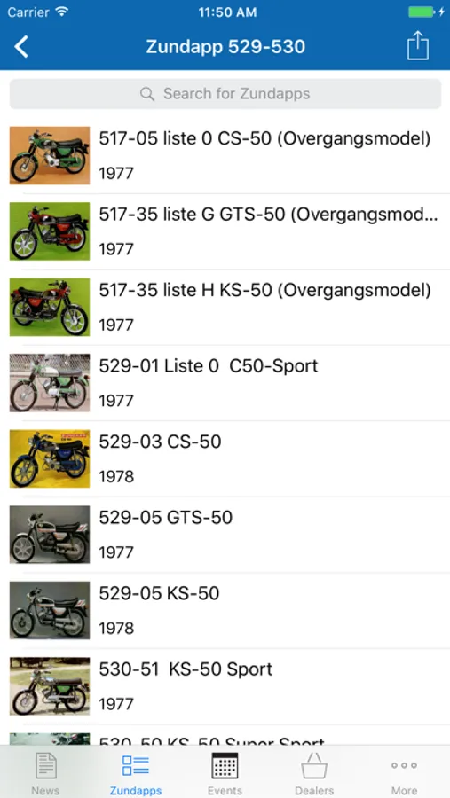 The Zund-App provides an overview of most models and types of motorcycles and mopeds Zündapp GmbH produced after the company was founded in 1917.