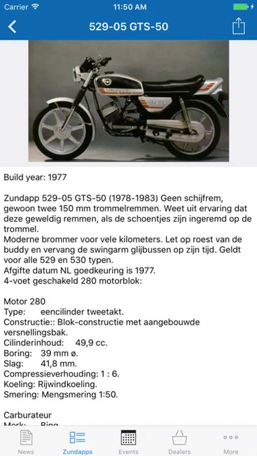 The Zund-App presents information about the Zündapp designs from the Z22 in 1921 up to and including the KS 80 Sport in 1984. There has been no other motorcycle brand that had so many innovations.