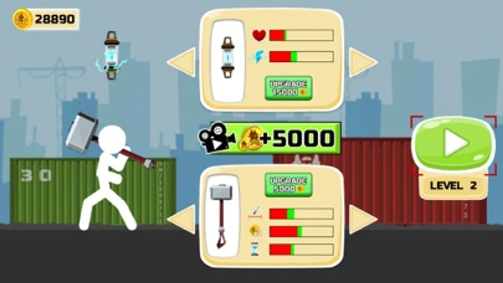 Lead your stickman to the final victory. You have a tons of different weapons available: swords, truncheon, thor's hammer, wraith scythe, unique cudgel, ali baba's tulwar, simbad's scimitar, grandpa's carbine", barana's star spike Mace, Gandalf's walking stick, bulgarian's umbrella, two handed mace, la guitarra, nimbus 3000 broom, decapitator heavy axe, ninja's bo staff, lancelot's lance, gladiator's sword, poseidon's trident, masters' sword, zangetsu, buster's sword, hattori hanzo's finest blade... and so many more