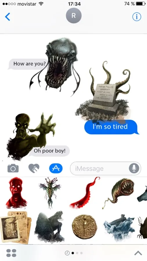 From the iClassics team, and following the success of our iLovecraft App, we now bring you our new and terrific Lovecraft Stickers. If you don't know our apps, please search for "iLovecraft" or iClassics on the AppStore to find and download this amazing app!