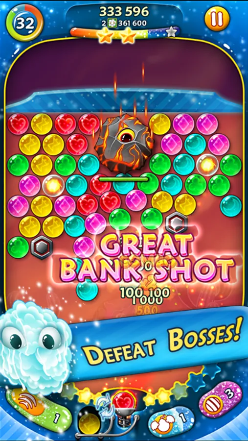 Easy and fun gameplay - tap where you want to shoot bubbles, make clever matches and defeat the obstacles and bosses to finish the level!