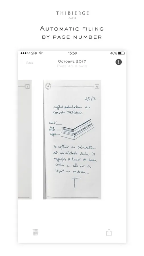 Take notes or make sketches in your Le Carnet Thibierge. The app takes care of filing them by booklet on your iPhone (smart filing).