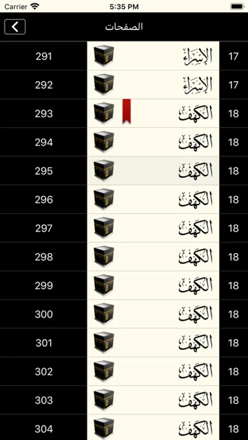 فهرس للصفحات يوضح كل صفحة ضمن أي سورة.